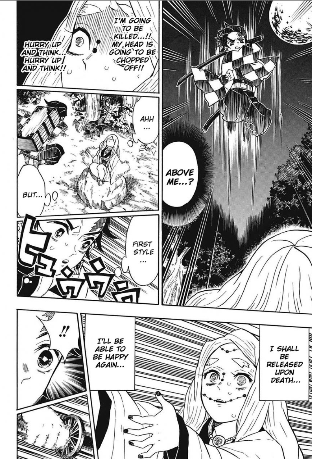 In the series Demon Slayer, the main mission of the protagonist Kamado Tanjiro (also romanized as Tanjirou) is to slay demons with other Corps members. He is a 13-year-old boy who has lost his family to demons, except his beloved younger sister who has turned into a demon. In a battle with the spider demons, Tanjiro encounters the Spider Mom, who is a subordinate of the cynical and strong lead of all spider demons--Rui. According to the manga, the Spider Mom offers to have her head chopped off because she wants to relieve herself from Rui's torturing tyranny.